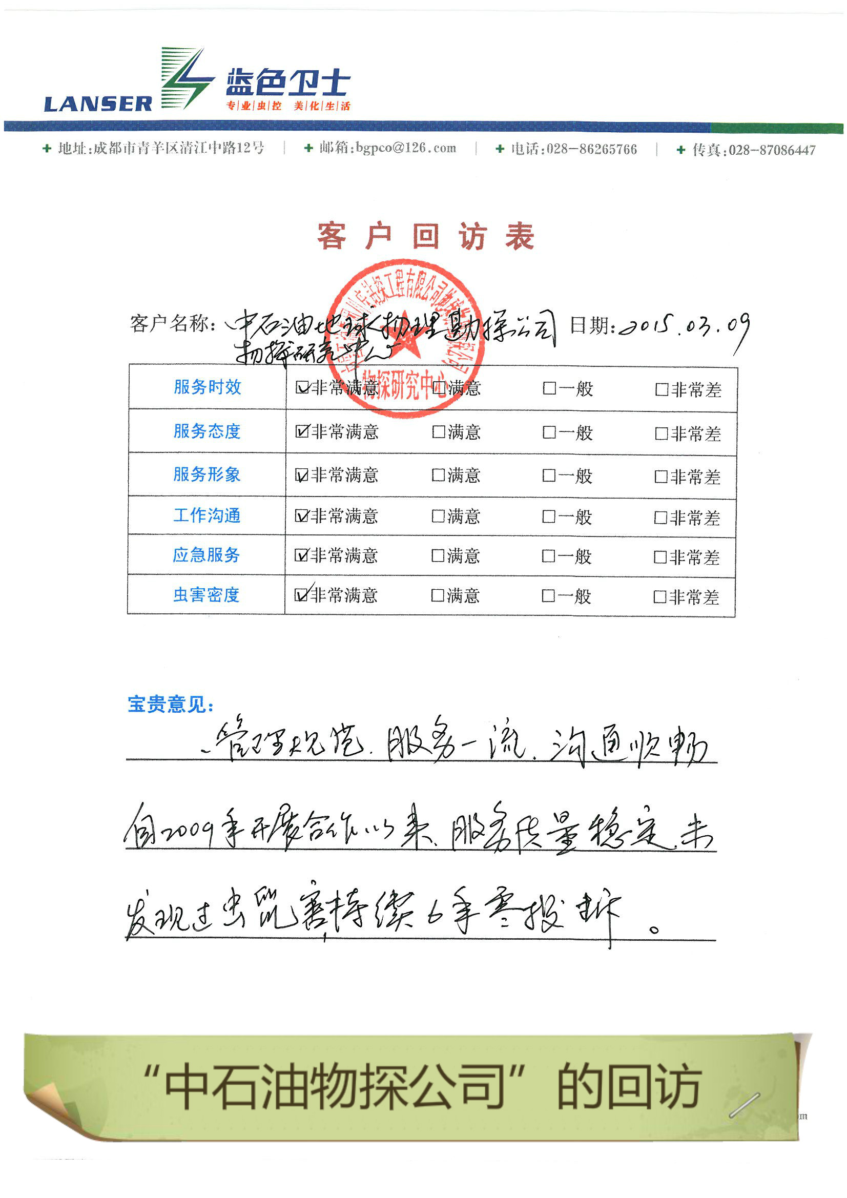 • 中石油物探公司的回訪評價